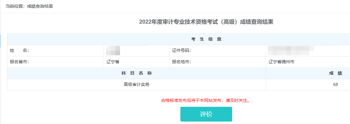 贝考网校辽宁学员「15**8」高级审计师考试笔试考试成绩为68分,以下为15**8高级审计师考试成绩的详细信息:
